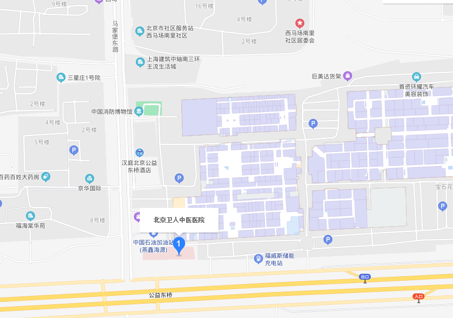 ③ 运通129线到公益东桥西站下,下车往回,沿南四环中路辅路走100米,直走过人行道,继续向前,沿南四环中路辅路走110米,到达北京卫人中医医院。